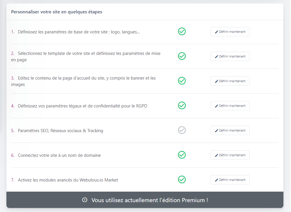 s’affiche en vert lorsque l’étape est complètement terminée et sauvegardée.