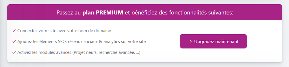 Une fois votre nom de domaine acheté, vous pourrez le « connecter » à votre site web en upgradant votre compte en PREMIUM.