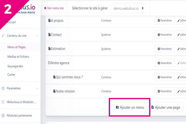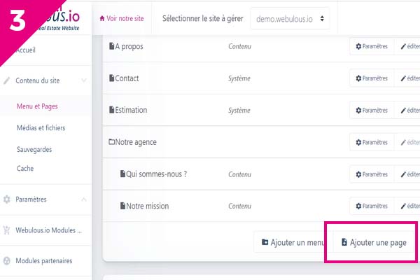 Si vous souhaitez avoir une nouvelle page dans votre menu, vous devez cliquer sur « ajouter une page »