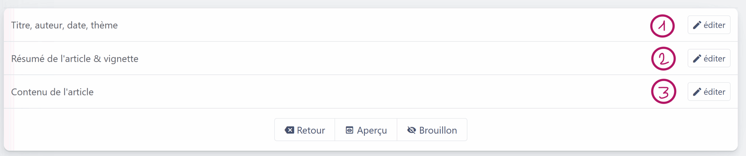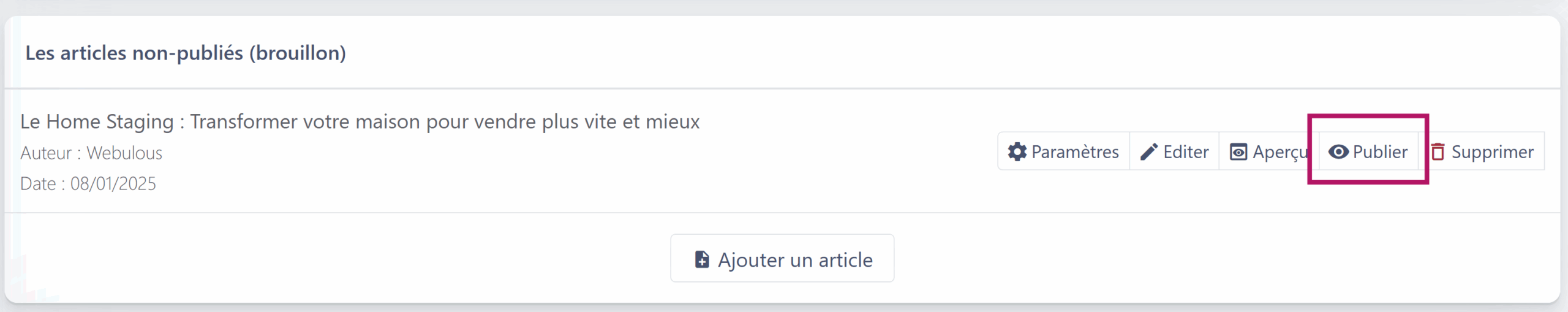 Par défaut, lorsque vous créez un article, il est en statut « brouillon ». Il se retrouve donc dans la liste « les articles non publiés ».