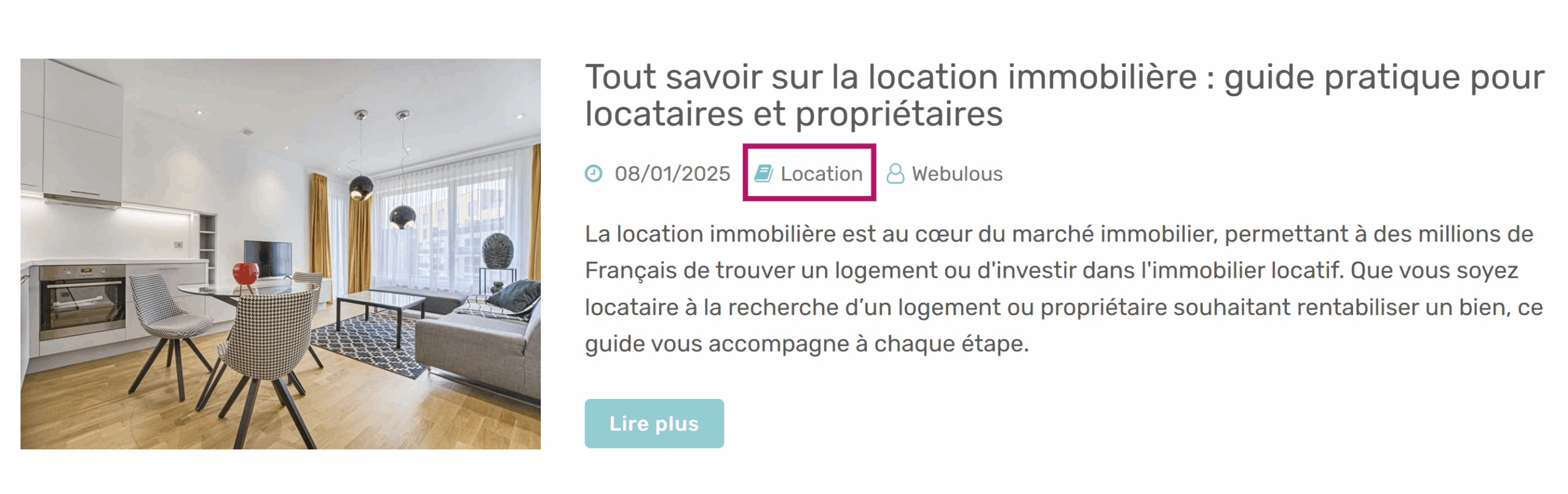 Le thème, associé à un article, sera visible sur la page « liste des articles ».