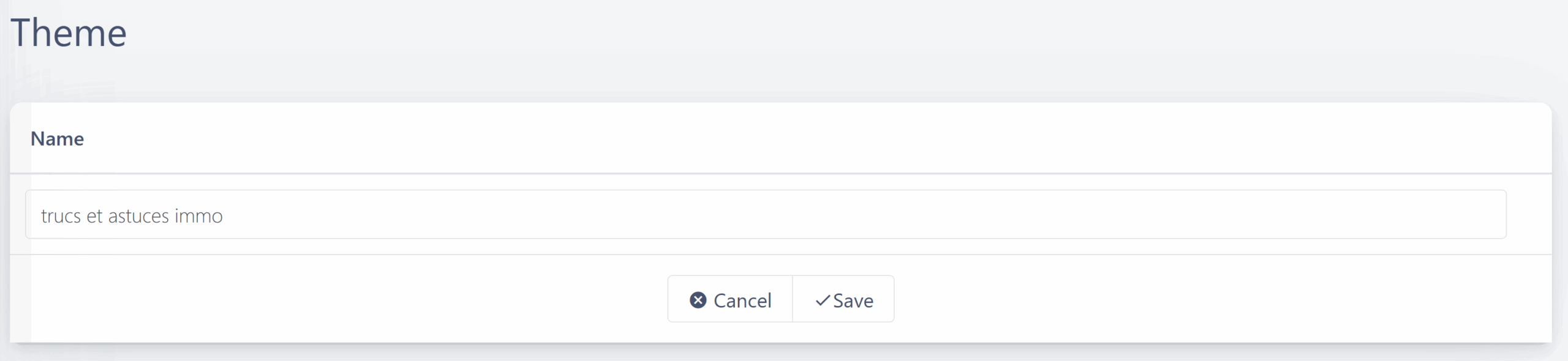 Vous pouvez ajouter différents thèmes pour vos articles (homestaging, trucs et astuces immo, financer l’achat d’un bien,…). Pour se faire, vous devez cliquer « ajouter un thème ».