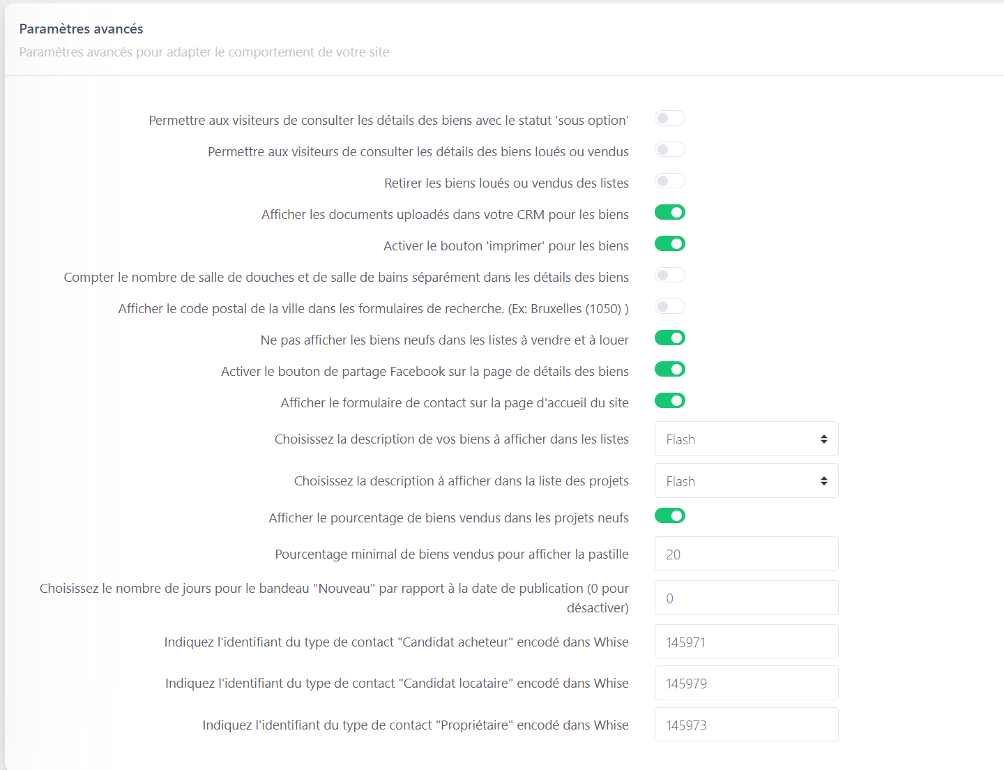 - Activer les modules avancés (Projet neufs, recherche avancée, …)